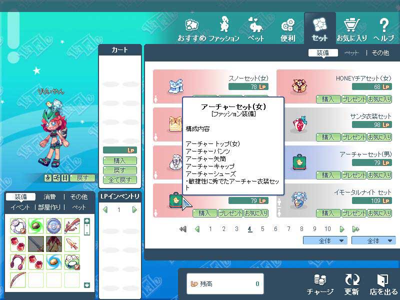 しかし1LP(ラテールポイント)は10円ですので、この衣装セットだと720円ということになります。