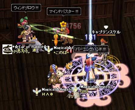 その後何名か落ち、PTを組み直したときにはメンバーにメイジもいたので「ある程度集めて範囲狩り」のスタイルでやってました。私は補助としてランドスパイクを撃ってましたが、効果的だったかどうかは謎です…。