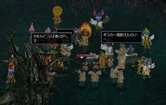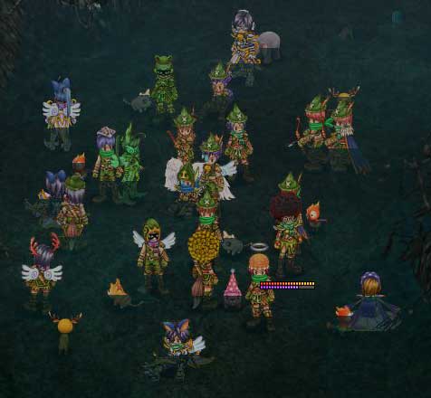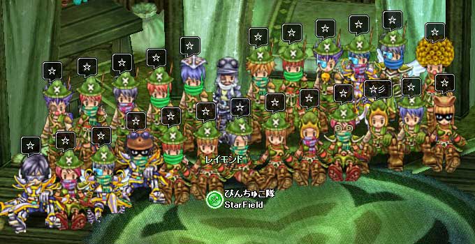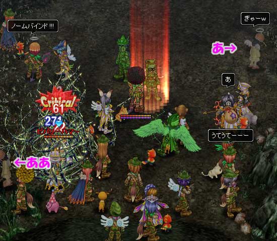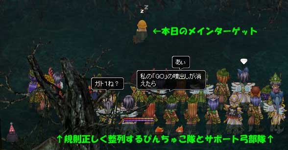 ぴんちゅこ隊のメンバーはリーダーの魔王様含め殆どが桜鯖から遊びに来ている人たちで、レベルは30台のため苺鯖の弓部隊がサポートに入るという形でイベントを進めます。私はこれまた沼地でサポートするには微妙なレベルなので、ついていってよかったのか…。