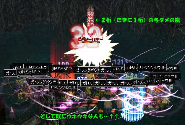 しかしこれだけ一斉にぴんちゅこっている(グラチェンサジの人もいる)にもかかわらずこの与ダメ…それでも数の暴力とはこのことか、なんとか撃破いたしました。