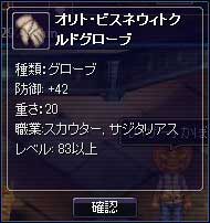 83防具もグローブと服はオリトを入手済み(靴も入手の目処がたちました)。