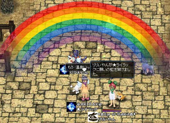 クエスト中久々にライちゃに会ったので虹かけてみました。