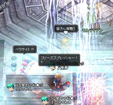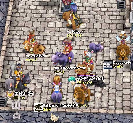 ちなみに実際にはもっと沢山の人が転職式に来ていましたが、わたしの知り合い以外の名前をブログに載せるのはあまりよくないと考え、なるべく私とギルメンだけが映っているSSを選ばせていただきました。