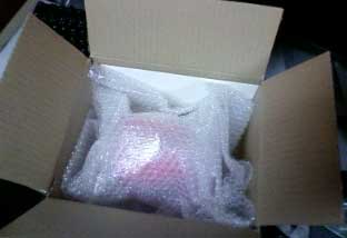 開けるとなんとなく過剰っぽい梱包のなかにピンクの物体が…。